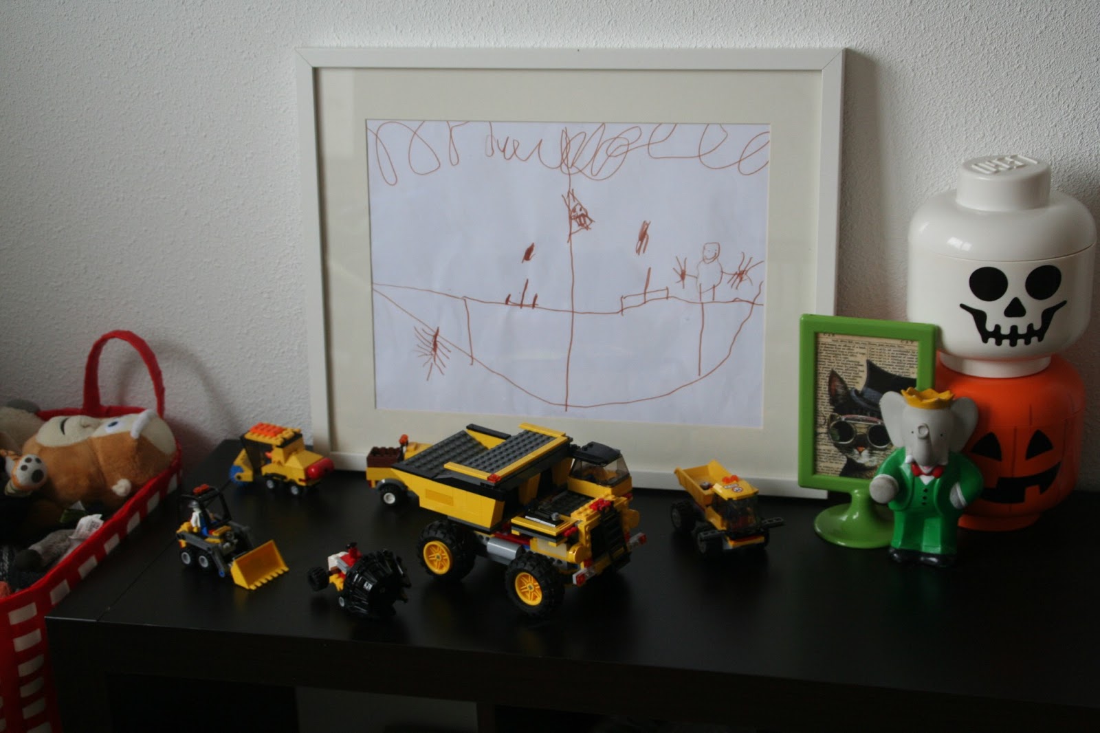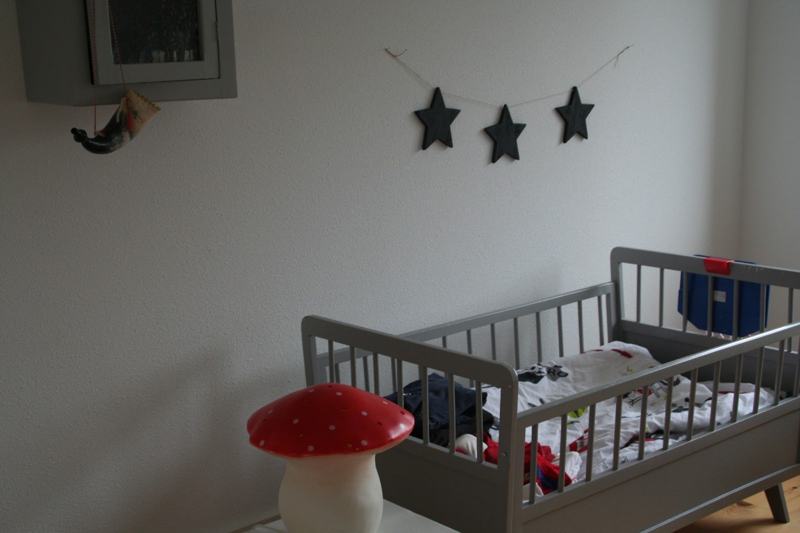 Een aantal foto’s van Jack zijn kamer. De houten sterren knoopte ik aan een touw en verfde ik zwart.