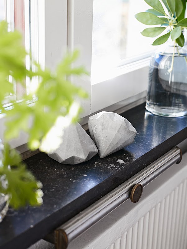 The Swedish site Stadshem is still one of my favourites sites to visit. This apartment caught my attention by the beautiful golden light and concrete Bloomingville diamonds.