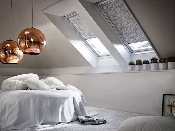Volgend jaar Mei wonen wij precies 10 jaar in ons huis. Iets wat ik nooit voor mogelijk had gehouden. Het langst dat wij ooit in een huis hadden gewoond was 5 jaar. Als ik heel eerlijk ben hebben wij de afgelopen jaren wel vaker over verhuizen gesproken en dat doen we nog wel eens. Maar eigenlijk wonen we in een perfect huis. Het is een nieuwbouw woning, die ruim is, genoeg kamers bied voor ons gezin, een woonkamer heeft om U tegen te zeggen, met een ligging in een kinderrijke en veilige buurt (een beschermend dorp), een tuintje, en een Noors uiterlijk. Wat wil een mens nog meer. Toch blijft de drang naar een oud huis (het liefst een monumentaal pand) trekken. Iemand met een zelfde liefde voor wonen als ik begrijpt mij waarschijnlijk precies. Een oud huis heeft karakter, ziet er van zichzelf al mooi uit! Met een nieuwbouw huis is dit altijd lastig en moet je veel in je hebben om zo’n huis karakter te geven. Na zoveel jaar en best veel inzicht op woongebied vind ook ik dit soms nog best lastig. Bij andere mensen kan ik het altijd prima verzinnen maar voor mezelf blijft het altijd moeilijk. Keuzes maken blijft lastig voor mij. Zo zijn er ook nu nog een aantal projecten op mijn lijstje die ons huis nog mooier moeten maken. Waaronder de zolder. Wij hebben een vide zolder die van de voor- naar de achterzijde van het huis loopt. Echt een topper, maar problematisch qua licht. En licht is ruimte. Als ik op de zolder sta kan ik het plafond raken, dus erg hoog is hij ook niet. Dit “probleem” (ofwel problemen) zouden prima opgelost kunnen worden met een paar dakramen. Na een verzoek in mijn mail een aantal weken geleden, om een gesponsorde blogpost te schrijven over VELUX® ben ik eens gaan zoeken op hun site. Deze inspirerende foto’s trokken mijn aandacht. Deze prachtige dakramen van VELUX zijn de oplossing! Onze zolder die nu nog fungeert als opslag voor mijn webshop zou een prachtige ruimte kunnen worden mede dankzij deze VELUX dakramen en raambekleding. Als ik deze foto’s zie, zie ik een prachtige slaapkamer voor me. Of een geweldige slaap- of televisiekamer voor de kinderen. Of een mooie ruimtelijke werkplek (zie het mooie wolkendek over je heen gaan, wauw!) Genoeg inspiratie dus. Hopelijk weerhoud het er mij (of ons) er voorlopig van ons huis te verkopen. Dat wordt sparen en volgend jaar denk toch maar aan de klus!